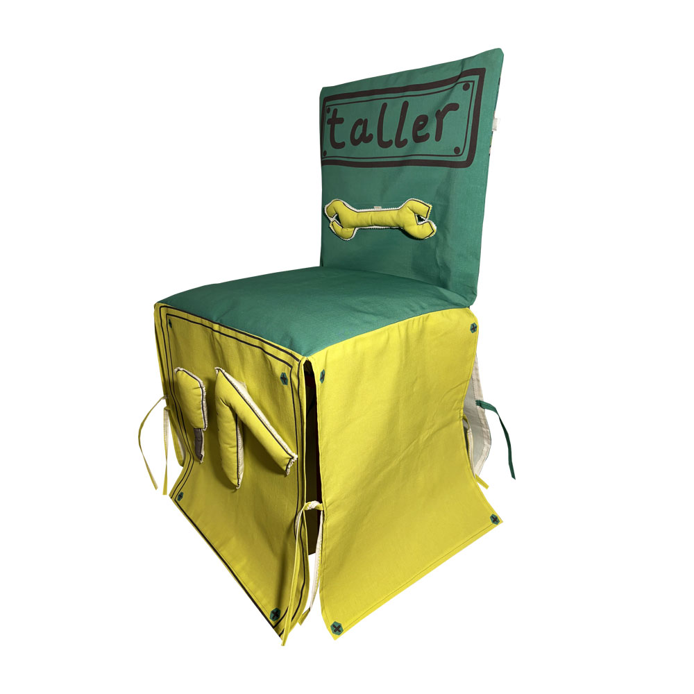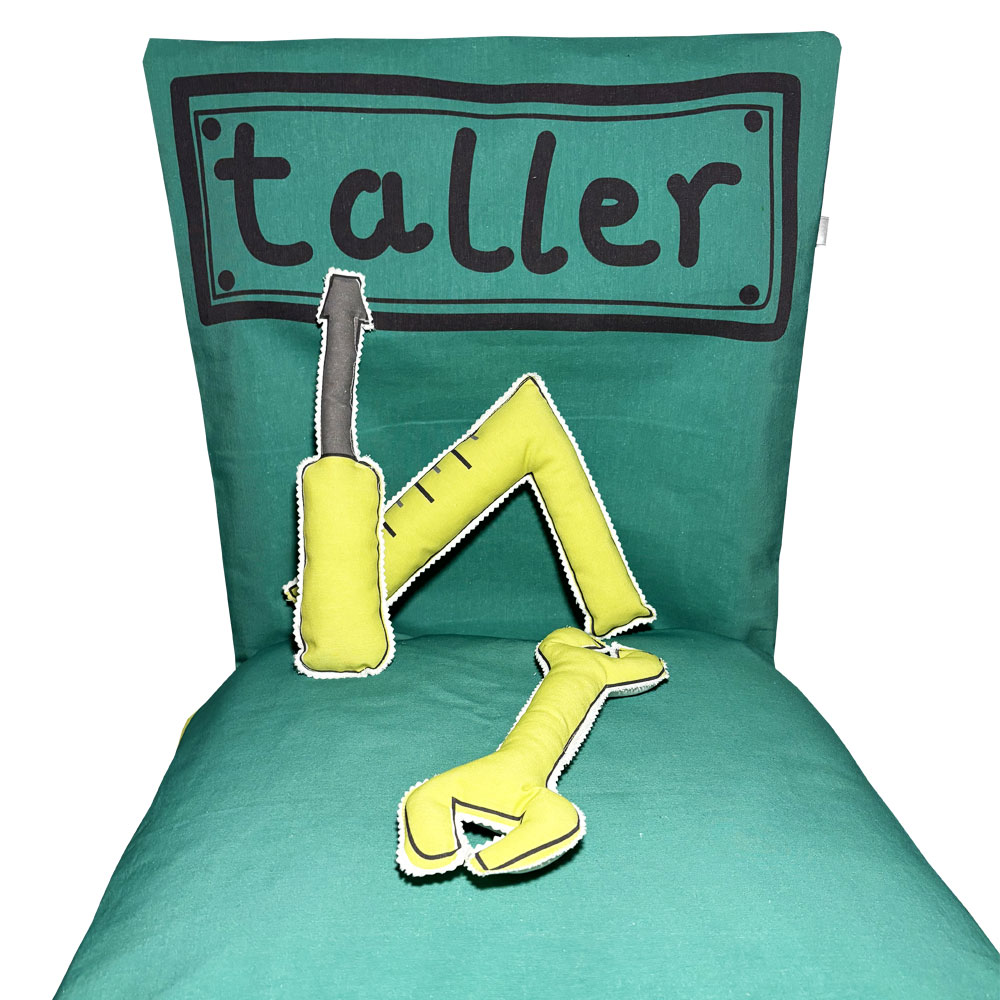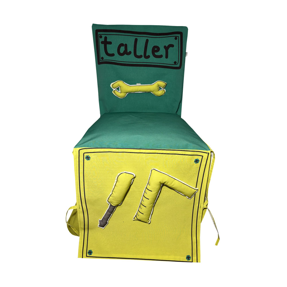 La cubre silla de maestro, te permite generar un espacio de interacción y juego de rol adicionado a un elemento básico con el que cuentas en casa como lo es una silla. Es tan simple como colocarla sobre cualquier tipo de silla y tu pequeño o pequeña podrá tener una superficie de trabajo donde imaginar que es un maestro que arregla o confecciona objetos, imitando a cualquier constructor!. Además gracias a sus medidas es fácilmente ubicable en cualquier silla de tu hogar.